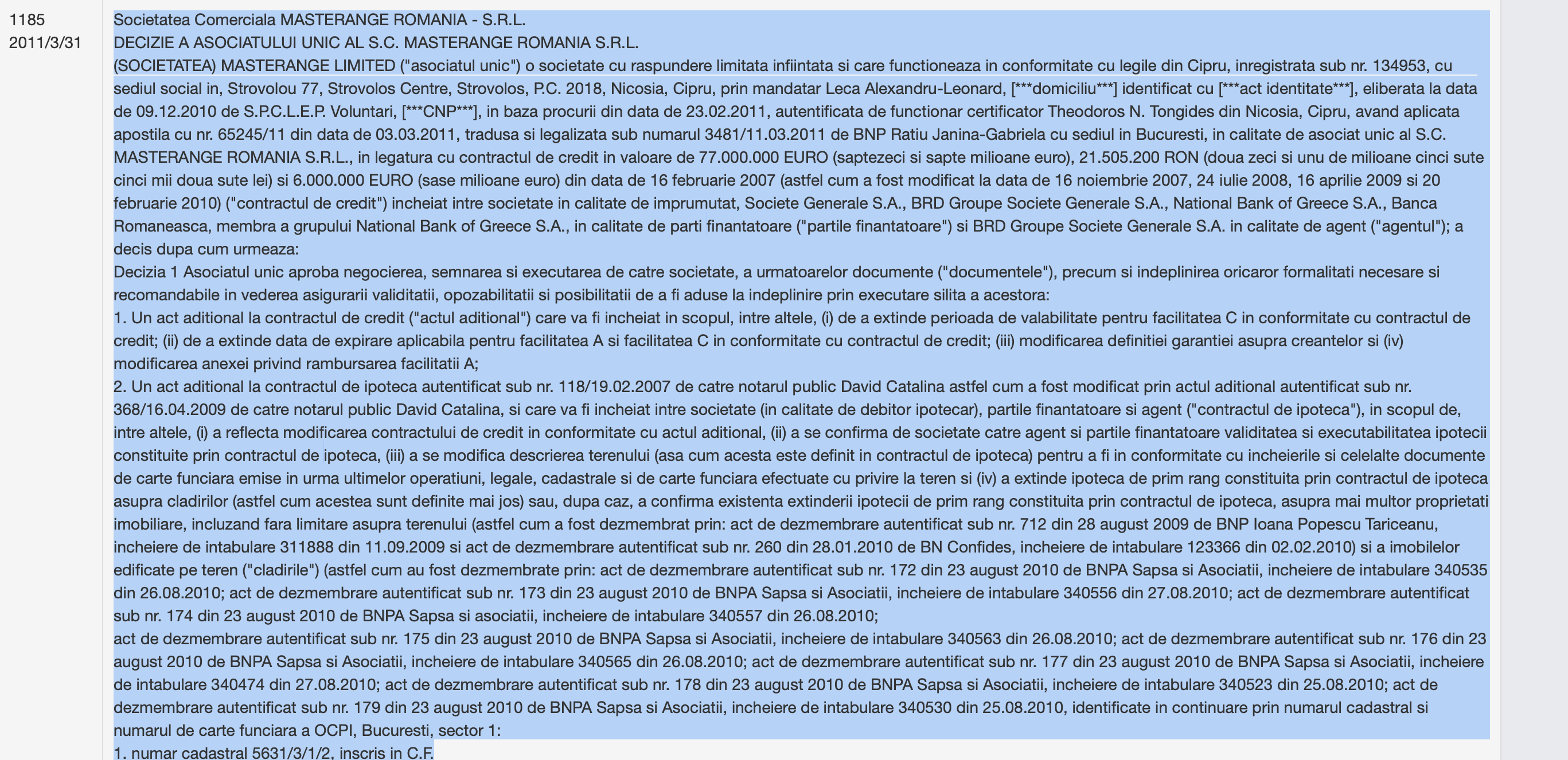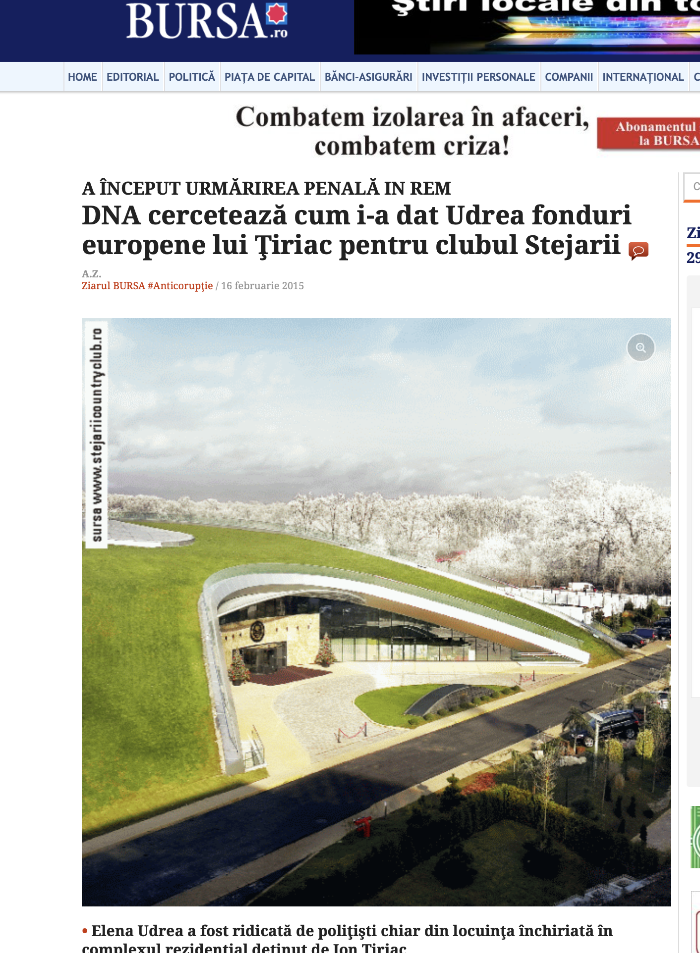 Inca un amanunt delicios, nestiut pana acum. Ca sa construiasca Stejarii, zgarcobul de Tiriac a luat, pe langa bani europeni, si un credit sindicalizat: 77 milioane euro de la BRD, 6 milioane de euro de la National Bank of Greece si 21,5 milioane lei de la Banca Romaneasca: