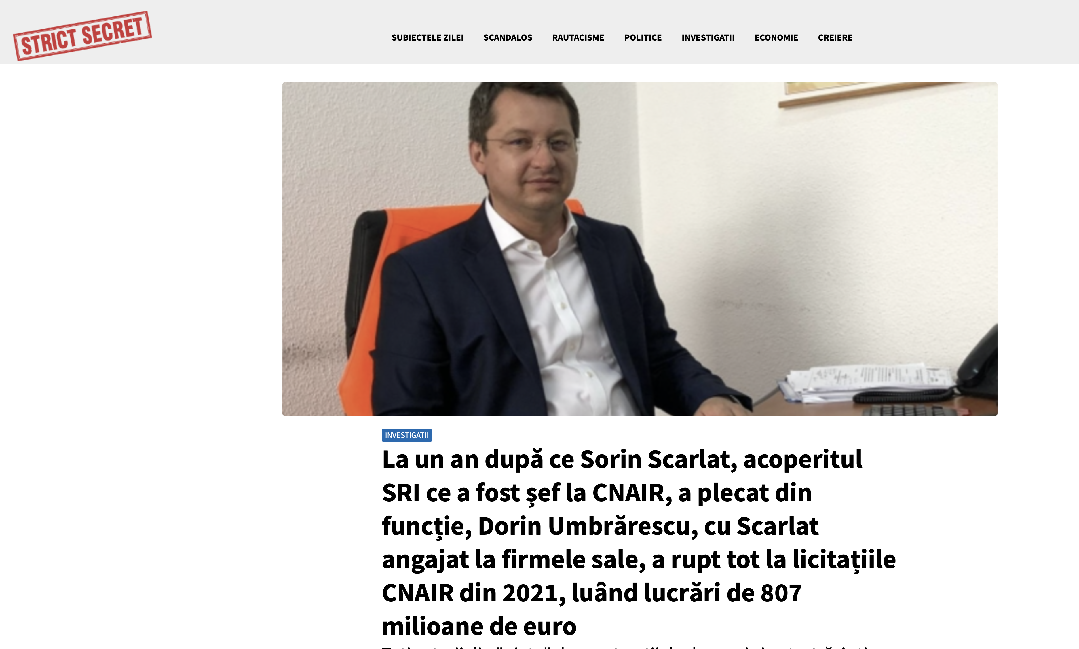 Nu știam că CNAIR e o instituție aflată în subordinea lui Umbrărescu, că nu mai insistăm să îl contactăm. Dar e trist că s-a întâmplat următorul lucru: pe site-ul oficial al CNAIR, coordonatorul și finanțatorul infrastructurii rutiere românești a apărut mintenaș un "comunicat" penibil de presă în care, practic, toate dezvăluirile Strict Secret au fost CONFIRMATE.