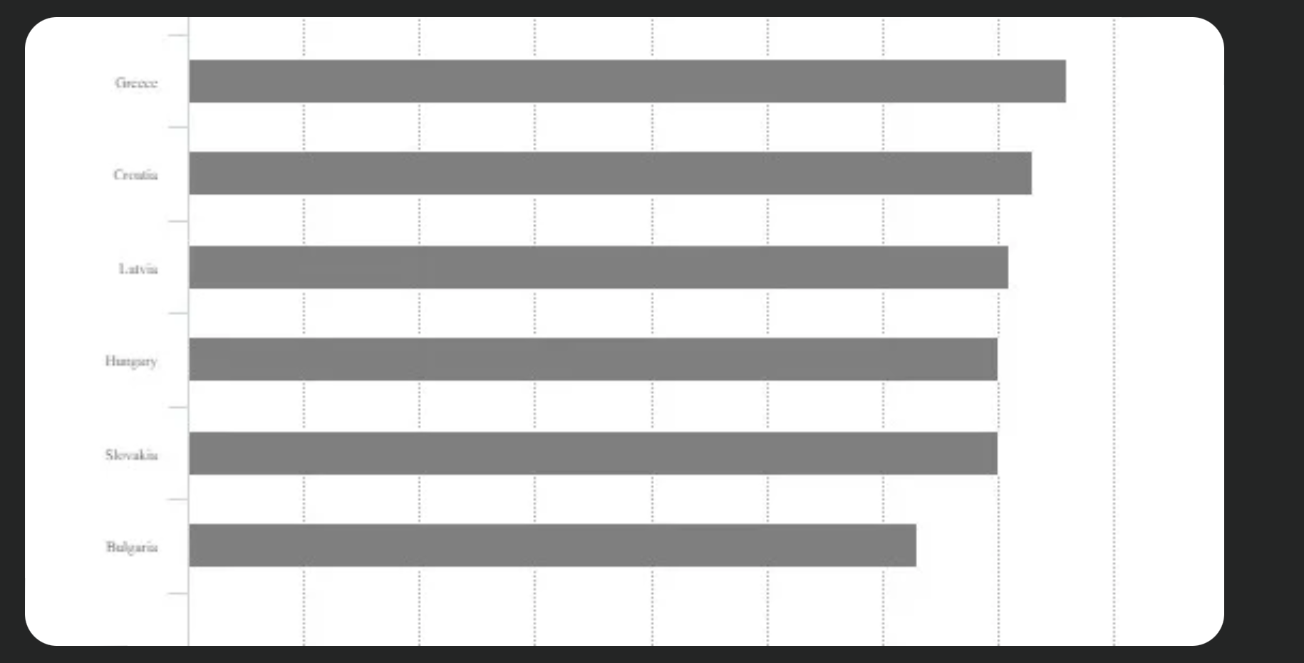 Graficul de mai sus arată modul în care s-a schimbat consumul individual în țările UE: România s-a întărit de la 54 la 82 la sută, Polonia de la 73 la 84 la sută, Croația de la 62 la 73 la sută, Cehia: de la 76 la 85 la sută, Slovacia: a scăzut de la 75 la 70 la sută .