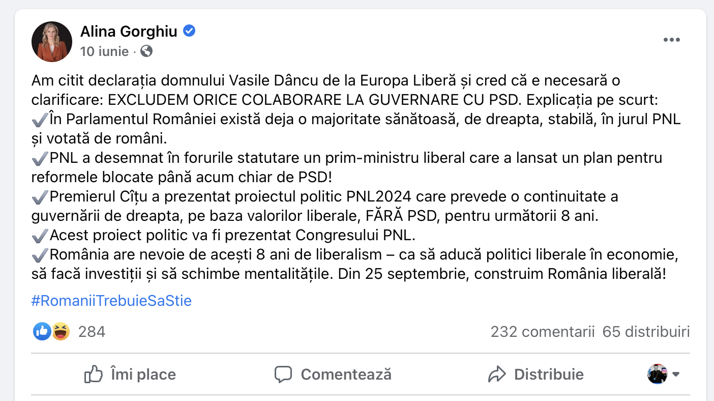 O sa vedeti, amandoi o sa nege motivul, o sa spuna presei ca trebuie sa inaugureze o statuie sau sa participe la un forum, dar despre asta e, in mare vorba: Iohannis a trimis-o pe Alina Gorghiu, omul sau de incredere, sa discute cu Vasile Dancu, omul de incredere al Sistemului., insotit de Lucian Romascanu, finul lui Marcel Ciolacu, ca sa aiba si presedintele PSD "ochi" acolo, sa nu il intepe cumva Dancu cu vreo nuanta.