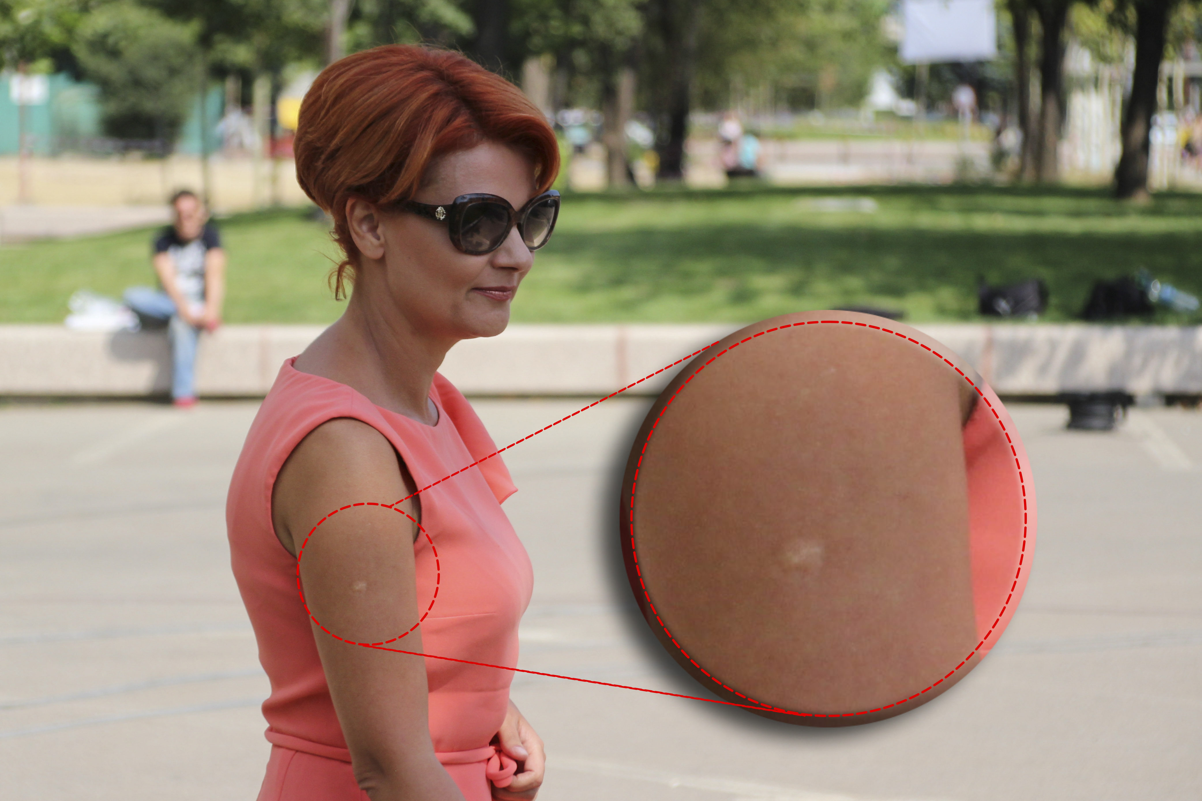 Mai mult, Lia Olguța Vasilescu are pe unul dintre brațe semnul distinctiv al vaccinurilor făcute de toți cei născuți în comunism, cel mai probabil BCG, împotriva tuberculozei. Cicatricea vaccinală, proeminentă la Olguța, nu apare în video la femeia roscata.