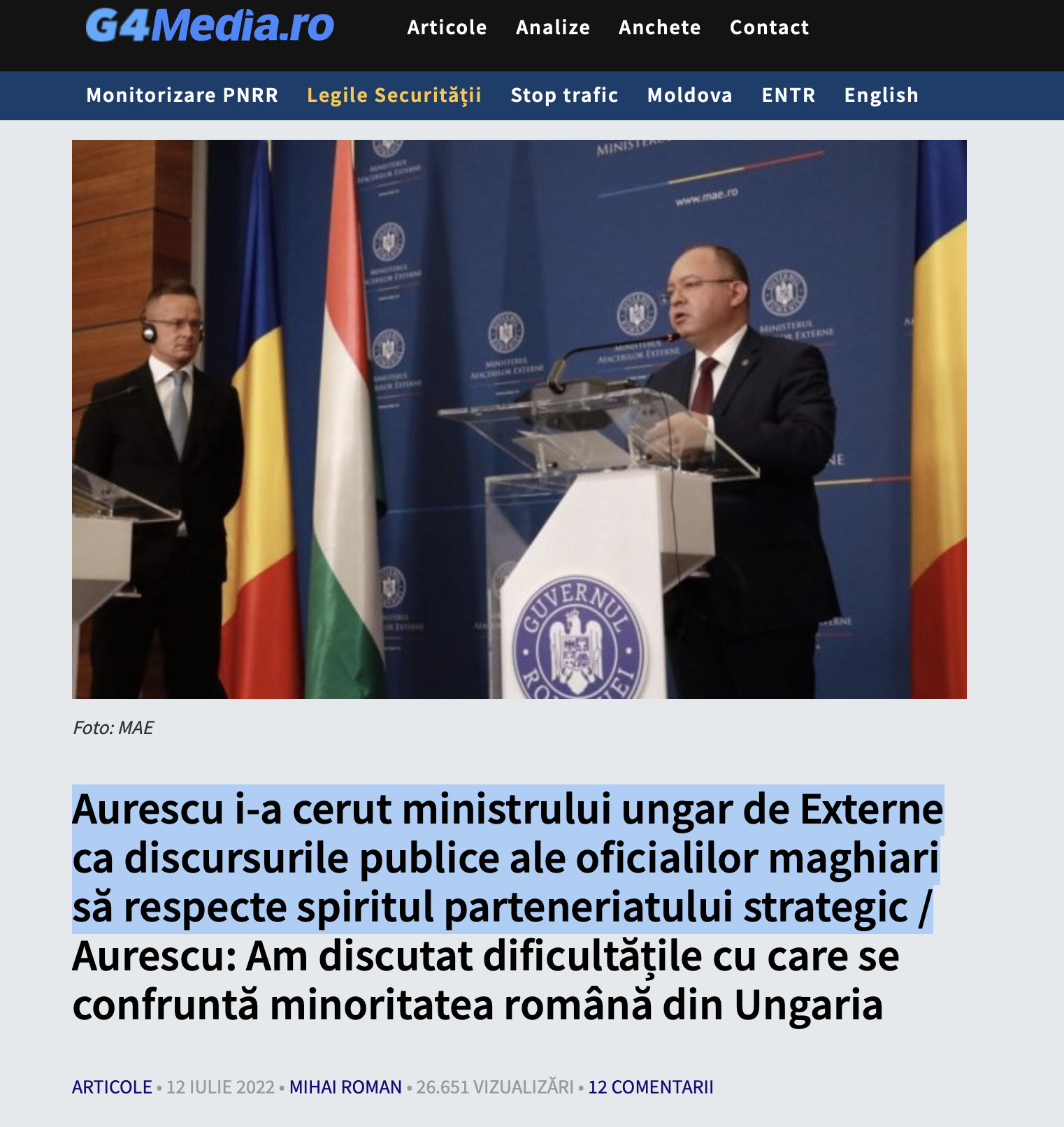Suntem atât de penibili și pentru că avem un ministru de Externe, în persoana lui Bogdan Aurescu, un bălălău fără anvergură. Recent, Aurescu s-a văzut la București cu omologul său maghiar Péter Szijjártó, pe care Aurescu l-a rugat că oficialii unguri care vin în România să facă declarații ”în logica și spiritul Parteneriatului strategic”, potrivit unui comunicat MAE.